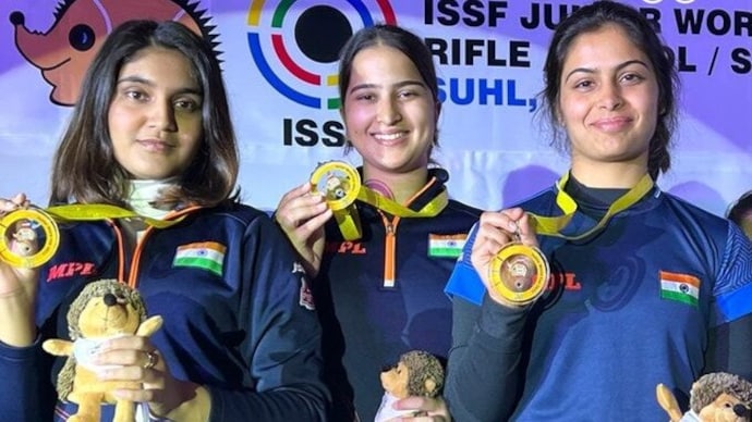 - In the women's 25m pistol team competition, Manu Bhaker, Esha Singh, and Rhythm Sangwan took home the gold medal.